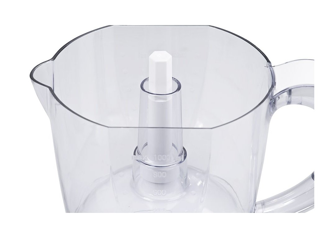 Šťava sa zachytáva do transparentnej nádoby s objemom 1 liter, takže môžeš vytvoriť dostatok nápoja pre celú rodinu. Praktická rukoväť a tvarovaný výlev umožnia pohodlné a presné nalievanie bez rozliatia.