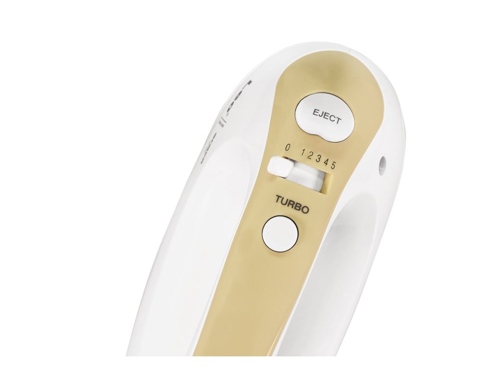 Súčasťou balenia sú šľahacie metly aj hnetače, takže pri pečení nemusíš nič dokupovať. Jednoducho si vyberieš jednu z 5 rýchlostí, ktoré plynule prepínaš posuvným spínačom, a keď potrebuješ extra výkon, stačí stlačiť TURBO – motor sa okamžite roztočí na maximum.