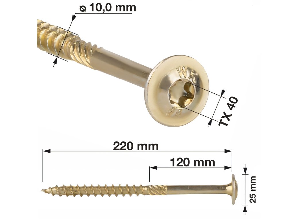 TX 10x220mm - 1 Kartón (4x25 ks) - Skrutky / Vruty do dreva s tanierovou hlavou, WKCP