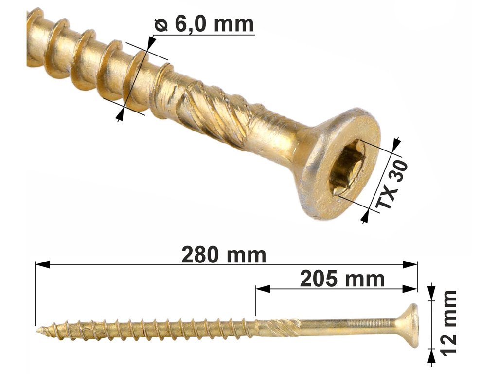 TX 6x280mm - 1 Kartón (4x100 ks) - Skrutky / Vruty do dreva so zapustenou hlavou, WKCS