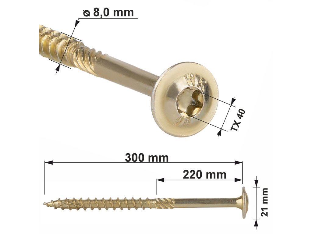 TX 8x300mm - 50 ks - Skrutky / Vruty do dreva s tanierovou hlavou, WKCP