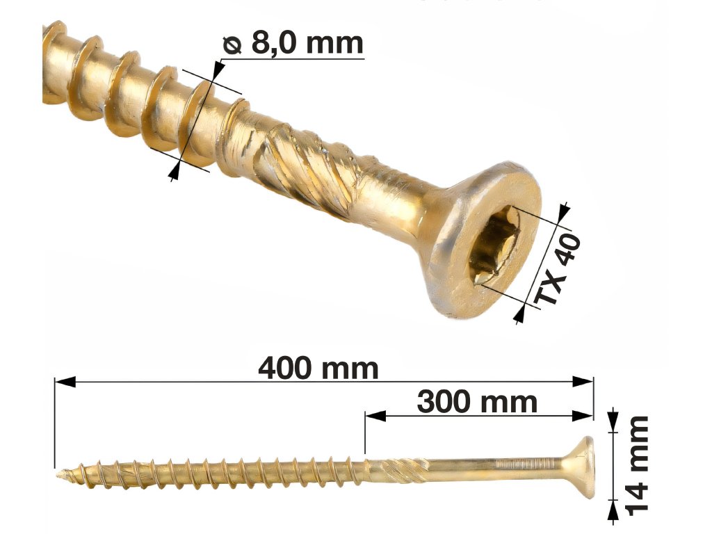 TX 8x400mm - 1 Kartón (4x50 ks) - Skrutky / Vruty do dreva so zapustenou hlavou, WKCS