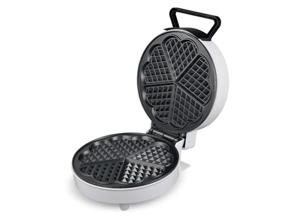 Tento praktický pomocník pripraví na jeden raz až 5 vaflí v tvare srdca, takže poteší nielen chuťové poháriky, ale aj oko.